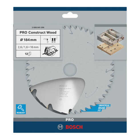IVA inclusaBosch Lama circolare per sega Construct Wood, 184x16x2,6mm 12