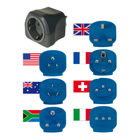Brennenstuhl Spina da viaggio universale con 7 adattatori 1508160W, Fusibile 10A in blis 1508160
