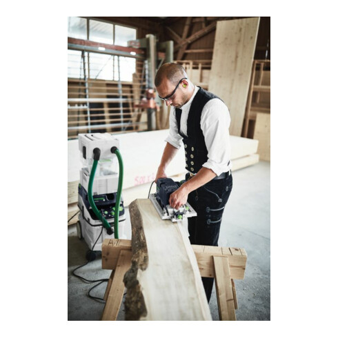 - Consente di lavorare in ambienti a bassa densità di polvere in combinazione con un'unità di aspirazione mobile