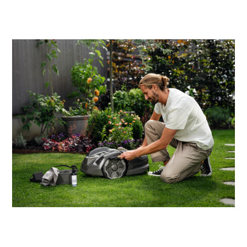 Un kit per la pulizia e la manutenzione che ti permette di mantenere il tuo Husqvarna Automower® in perfette condizioni. Questo set contiene tutto il necessario per rimuovere erba e sporco e pulire il robot tagliaerba durante la stagione di taglio. Il set comprende due spazzole: una piccola per superfici strette e difficili da raggiungere e una grande da utilizzare insieme a un tubo dell’acqua, un tampone abrasivo per pulire i collegamenti del rasaerba e della stazione di ricarica, un panno e lo spray Husqvarna Active Clean. Lo spray si applica facilmente, è privo di fosfati, biodegradabile e rimuove efficacemente ogni tipo di sporco. Nei scomparti aggiuntivi della scatola è possibile riporre e organizzare comodamente oggetti importanti come attrezzi e lame.