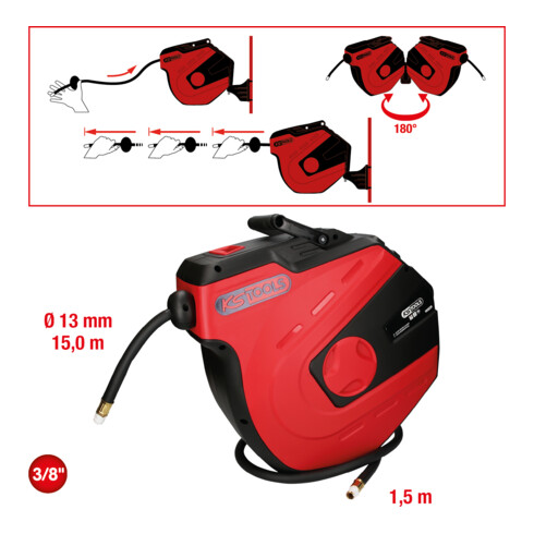 IVA inclusaKS Tools Avvolgitore automatico tubi per aria compressa, Ø13mmx15m