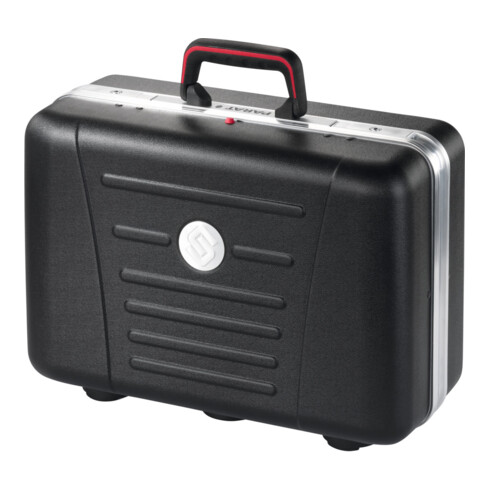 X-ABS è molto resistente agli urti, alla rottura e pertanto idoneo al trasporto aereo. La struttura della superficie è antigraffio, antiscivolo (effetto gommato) e non danneggia le superfici. Lucchetti a cilindro a scomparsa integrati nel doppio telaio in alluminio, bloccaggio a scatto per la chiusura del coperchio della valigetta e paracolpi sul fondo. 1 Vaschetta con divisori e piano di copertura, h 58 mm. Dotazione interna: 1 pannello con 25 alloggiamenti e 1 scomparto 400 mm, 1 pannello con 10 alloggiamenti, 1 piano di copertura con 15 alloggiamenti e 1 scomparto 400 mm e 1 portadocumenti con 2 scomparti per biglietti da visita e 2 portapenne. Lucchetti TSA: Per i viaggi negli USA, questi lucchetti possono essere aperti e richiusi dalle autorità di sicurezza statunitensi “Transportation Security Administration” (TSA) con una chiave generica ai fini dell’ispezione. Si evita così l’apertura violenta della valigetta (rottura del lucchetto) nel caso di ispezioni.