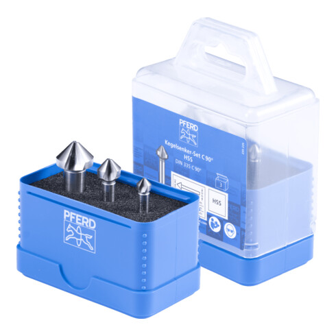 - I set contengono utensili di svasatura ad alte prestazioni con un angolo di svasatura di 90° per svasare viti a 90° per tutti i materiali più comuni come acciaio, acciaio fuso e metalli non ferrosi.