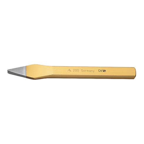 In acciaio, ovale appiattito, temprato e rinvenuto. Tagliente indurito in modo uniforme; ciò consente la riaffilatura multipla senza ritemprare. Lo speciale trattamento della testa di percussione ne previene la scheggiatura.