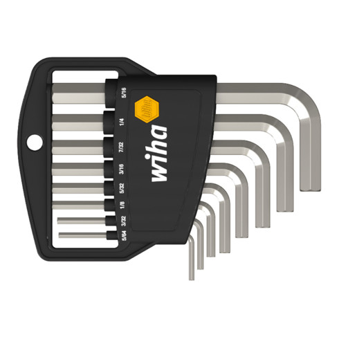 Wiha Set di chiavi maschio in supporto classico esagonale 8pz. corto, nichelato lucido, versione in pollici